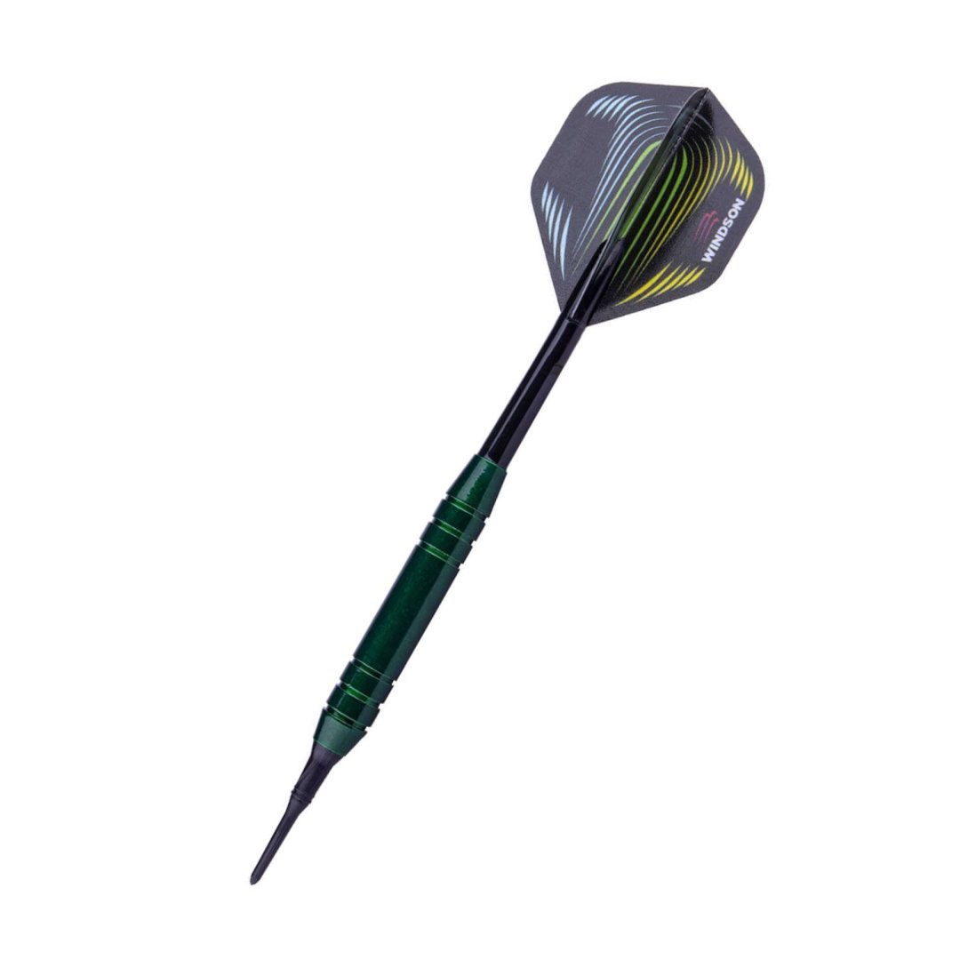 Softdarts Windson Stripes sind Messing Darts mit grünem Barrel, sie sind insbesondere für Anfänger geeignet. Die Barrel werden komplettiert durch Nylon Schafte und Windson Flights.