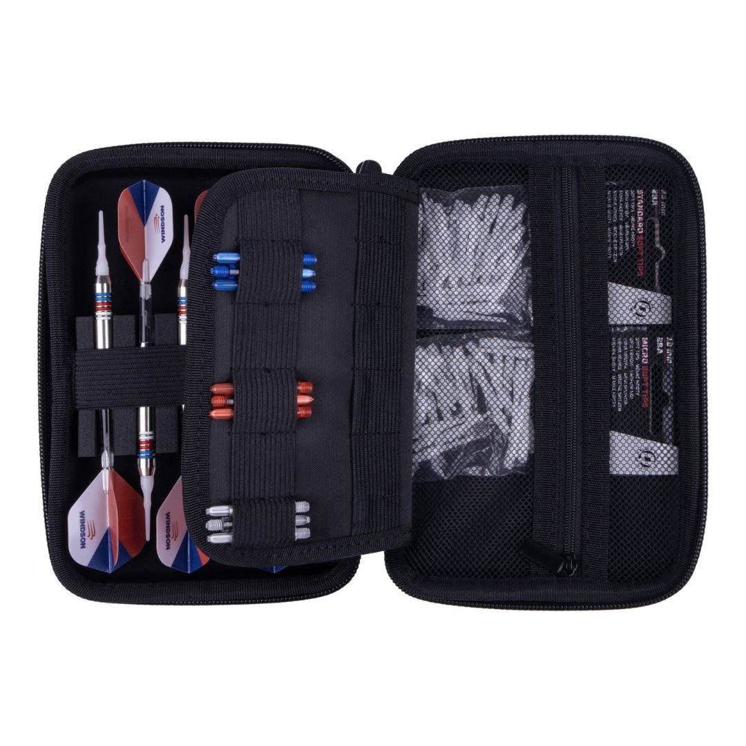 Das Dartcase Windson CASEMULTI ist ein stilvolles Dartcase, gefertigt aus widerstandsfähigem EVA, es ermöglicht die sichere Aufbewahrung von zwei Satz montierter Darts. Das Case ist mit einem Reißverschluss versehen und hat 8 Fächer für Flights und ein Netz-Fach für weiteres Zubehör.