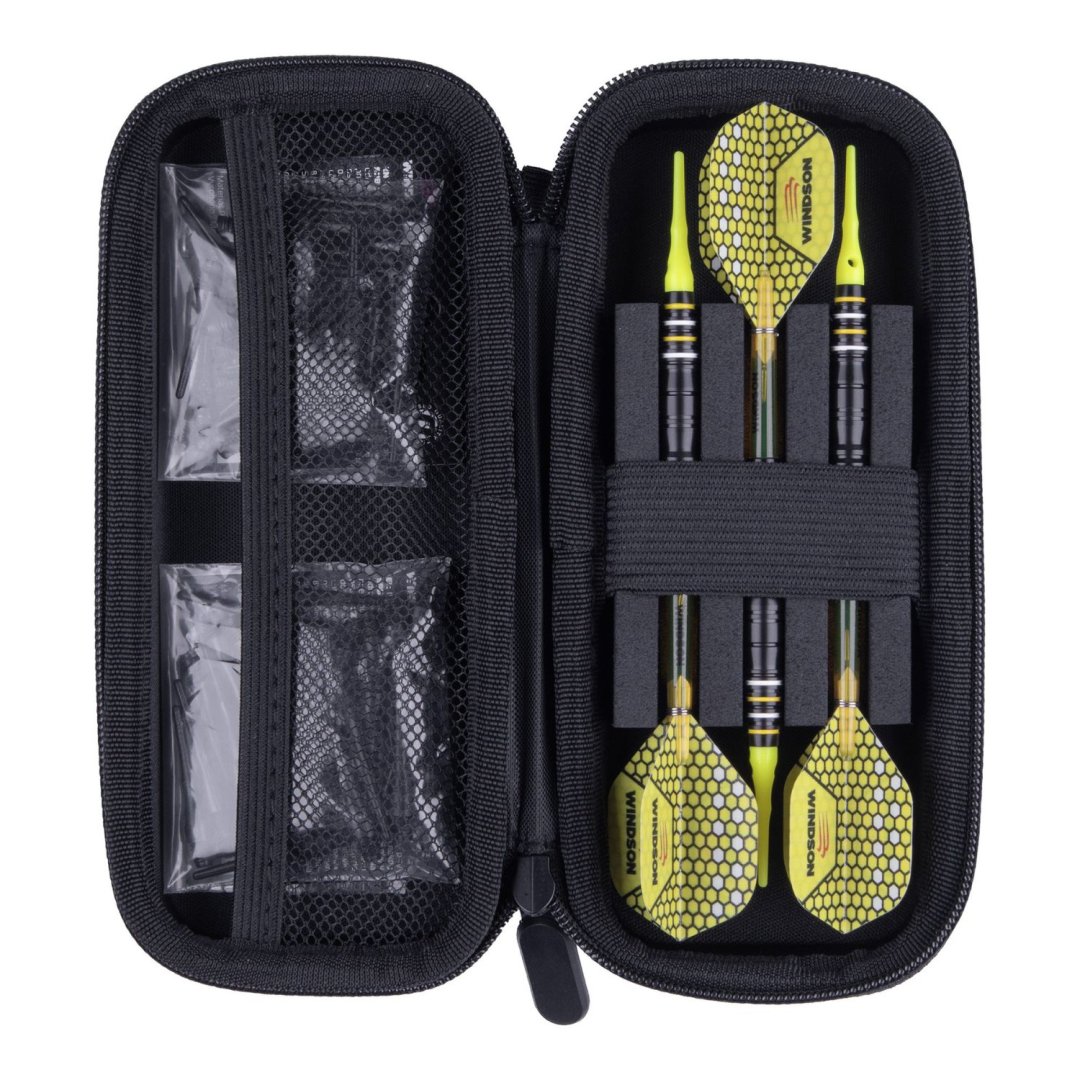 Das Dartcase Windson CASE ist ein stilvolles Dartcase, gefertigt aus widerstandsfähigem EVA, es ermöglicht die sichere Aufbewahrung eines Satzes montierter Darts. Das Case hat einen Reißverschluss, innen gibt es auch ein Fach für Zubehör.
