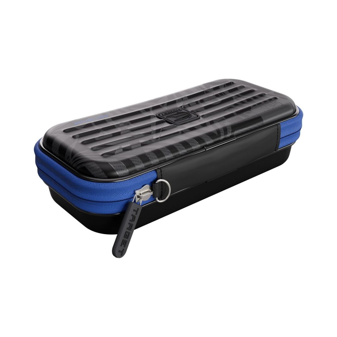 Verschließen des Etuis mit Reißverschluß. Im Inneren des Etui wurde eine Samtschicht zum Schutz gegen Zerkratzen und für ein weicheres Aussehen hinzugefügt. Die Darts können zusammengesetzt (inkl. Flights) in das Etui eingelegt werden, sie werden durch ein elastisches Band gesichert, um Bewegungen der Darts im Inneren zu verhindern. Im Inneren des Etuis befinden sich zwei Fächer mit Reißverschluss für Zubehör.